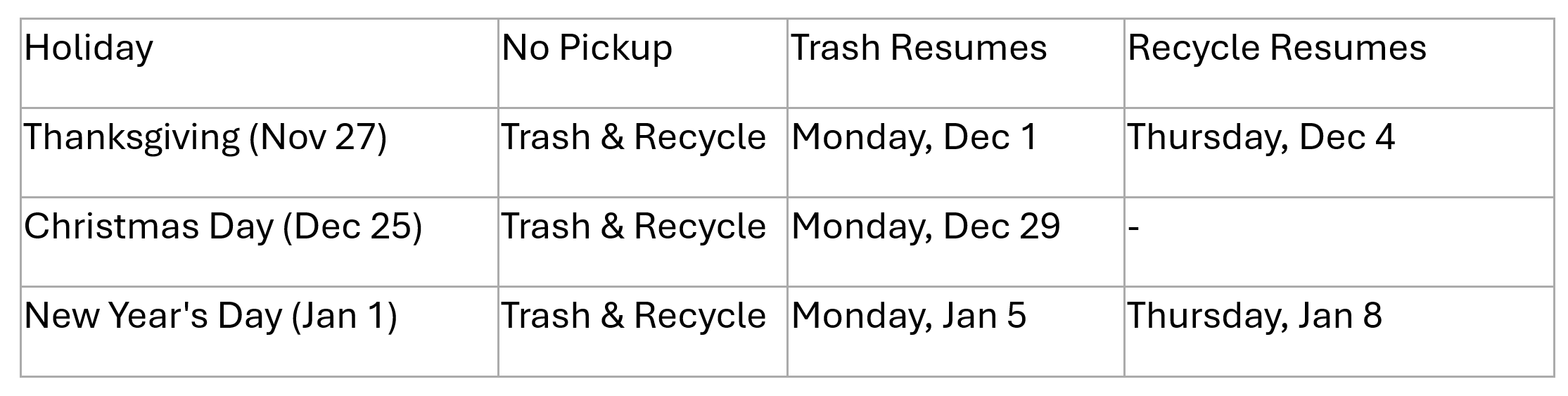 🗑️ Holiday Trash & Recycling Schedule Update from Best Trash
